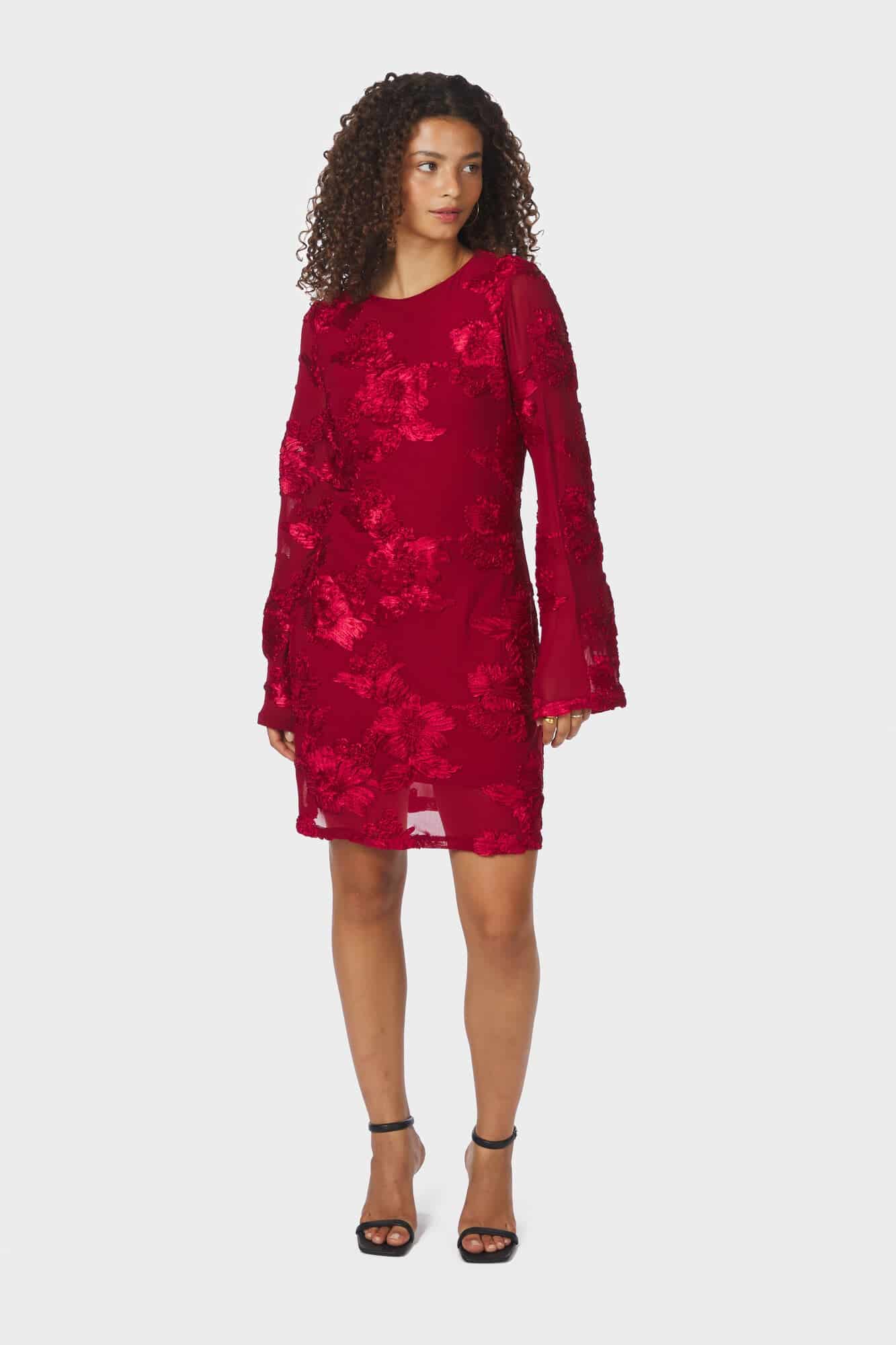 Dirina Big Flower Mesh kjolen fra Neo Noir er en kort kjole med lange, vide ærmer og en rund halsudskæring. Kjolen er fremstillet i et transparent materiale og dekoreret med store blomster.