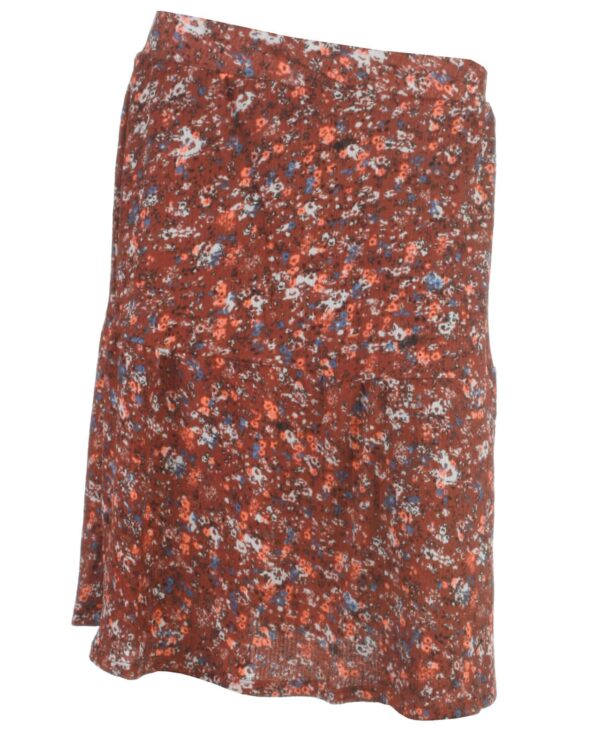 Garcia skirt, powderterraMærke: GarciaFarve: BordeauxMateriale: 95% polyester, 5% elastanVask: 30°Bordeaux rød nederdel fra GarciaElastik i livetAll-over orange, blå, hvide og sorte blomsterLogobadge bagpåVandret syning på midten, der giver flæse effekt p