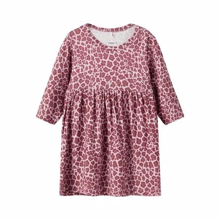 Mega sej langærmet kjole fra Name It med et skønt leopard print. Fed lyserød farve. Lavet i blød viskose.
