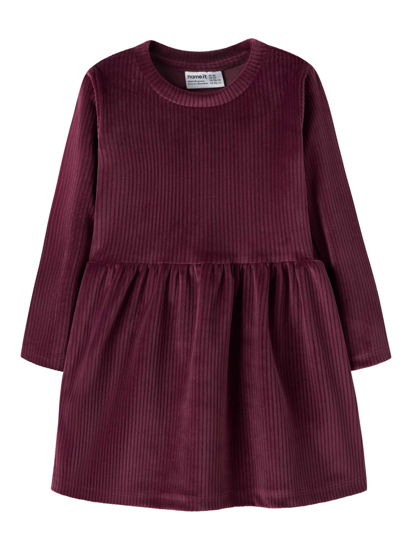 Skøn kjole fra name it. den er lavet i det smukkeste velour i en flot farve. Den har rund hals og lange ærmer.