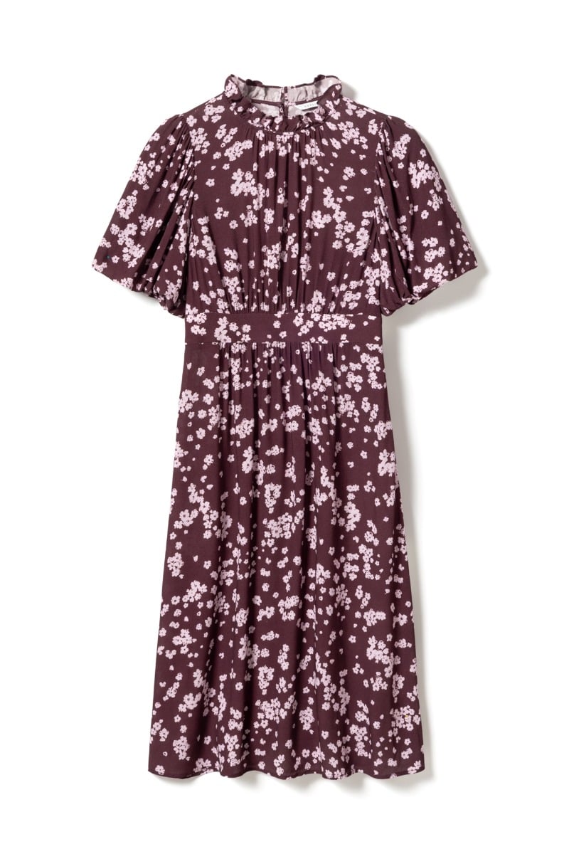 En fin kjole fra Noella er kommet i dette fine print i bordeaux og rosa farver. Den er løs i pasformen og går op til halsen hvor den lukkes med en lille knap. Den har korte ærmer som er perfekt til denne årstid.Â