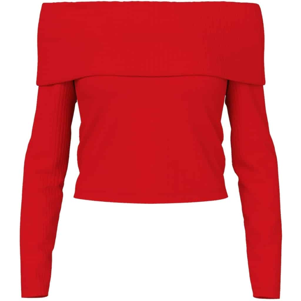Den smukkeste off shoulder top med lange ærmer fra Pieces. Toppen er super alsidig og kan styles med hvad end man har i klædeskabet. – Off shoulder- Rib- Nem at styleMateriale: 65% Polyester, 30% Viskose, 5% Elastane