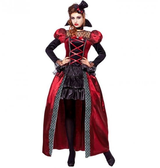 Rød Viktoriansk Vampyrinde Kostume – Kjole$Krave$Hat