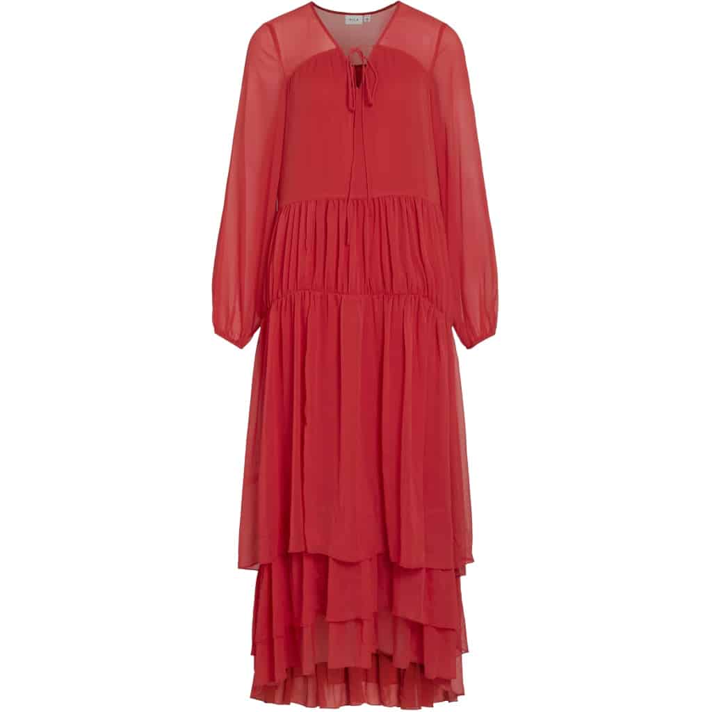 Lang kjole fra Vila med flæser og transparante ærmer. Kjolen er super feminin og ideel til festlige anledninger med et par stiletter. – Flæser- Transparante ærmer- Feminin Materiale: 100% Polyester – Recycled